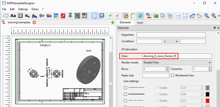 2D derivations (dw files) can directly be used in the PARTtemplateDesigner for the 3D PDF data sheet function, which is provided on the platforms PARTcommunity, PARTserver, PARTsolutions and Offline CDs. See Chapter 10, PARTtemplateDesigner - Create datasheets .