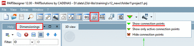 For this, in the Standard toolbar, click on the button Show connection points, if needed.