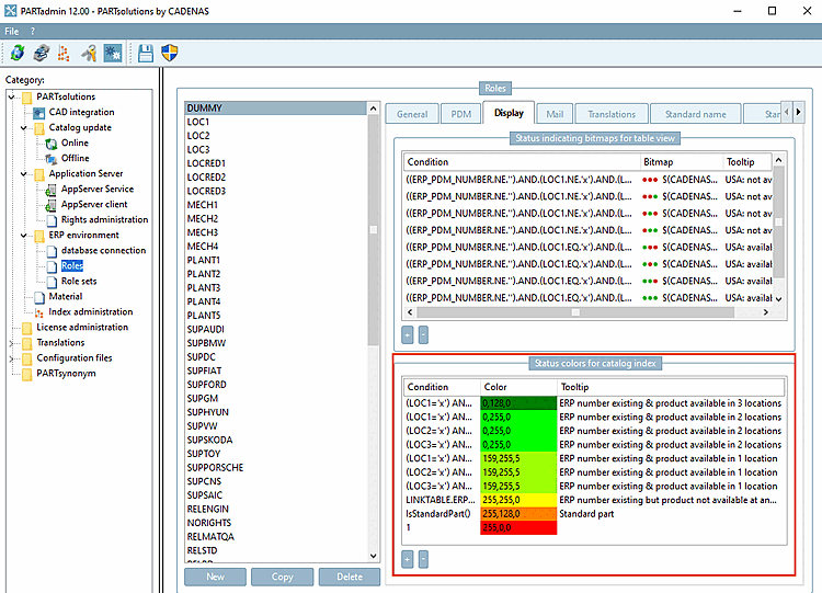 Result of status colors for catalog index [Status colors for catalog index] in PARTdataManager