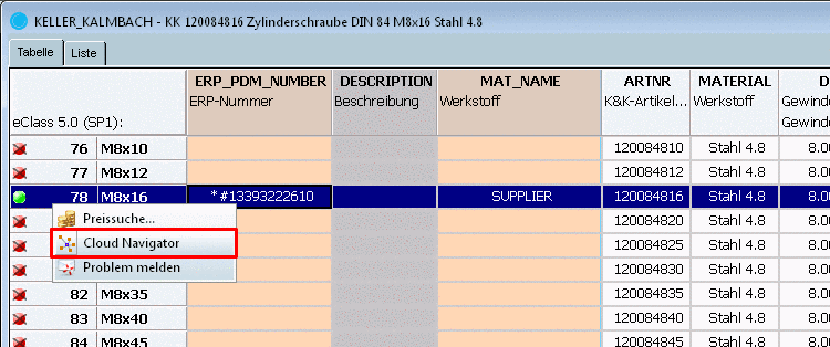 The result in the Cloud Navigator shows all found standard parts