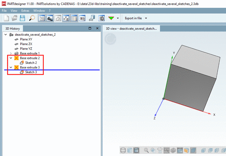 Up to now in order to disable a sketch (e.g. temporarily for testing purposes), you had to set an invalid condition such as "0=1", for example or to make an already existing condition invalid. Now with V11 SP9 there is a new function Deactivate to simplify this, which furthermore can be used in order to disable several sketches all at once.