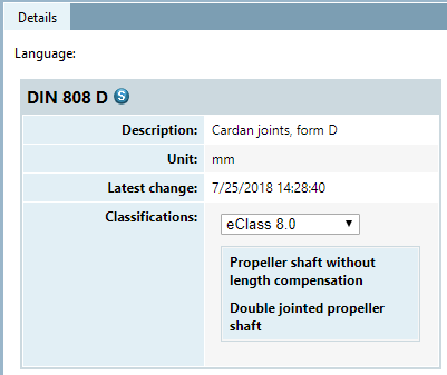 Catalog or project information is displayed by default on the Part selection tab page in the Details docking window.