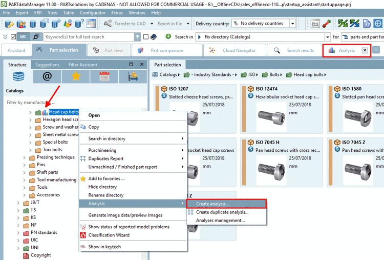 In PARTdataManager, you can find the function Create analysis... (Make or Buy, Cost mockup, Suppliers [see Section 3.1.14, “ Analysis ” in PARTsolutions - User manual]).