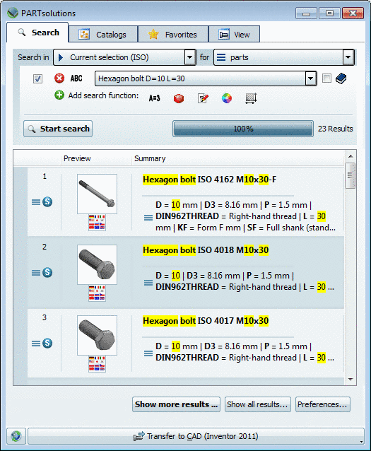 On this see under Section 3.3.14, “ "Search" tabbed page ” in PARTsolutions - User manual.