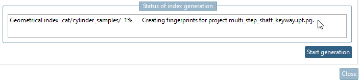 Tabbed page Index generation: Here you can start index generation in parallel for different index types. You can select the entire catalog, directories, projects or just individual lines.