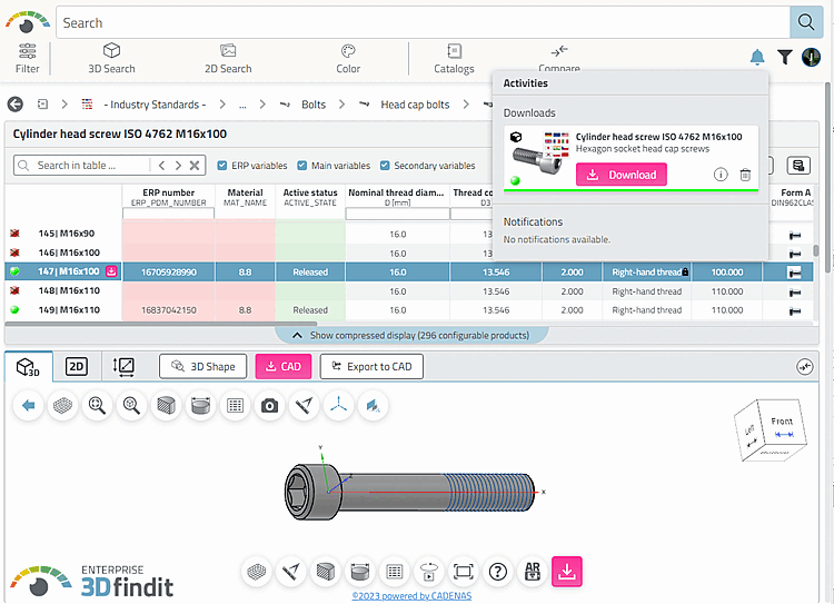 [36] You can find details on administrative presettings under Section 4.21.5, “Set CAD format download (pappserver.cfg) ” in ENTERPRISE 3Dfindit (Professional) - Administration.