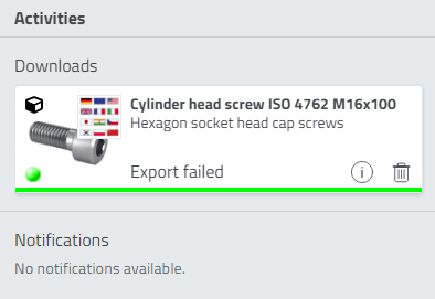 -> The Activities dialog box opens and the generated part is offered for download.