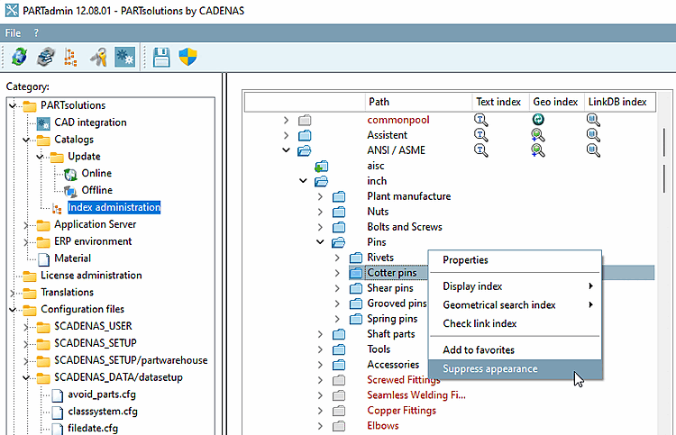 The Using replace_std.cfg is an alternative to the function under PARTadminIndex Management [Index administration] -> context menu command Suppress display [Suppress appearance] (see Section 1.4.3.6.6.11, “ Suppress display / Restore display ” ).