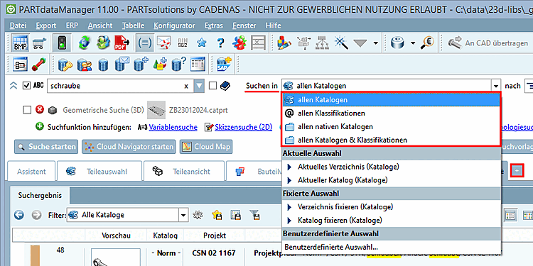 You can configure with which selection under Search in PARTdataManager or a new search tab opens .