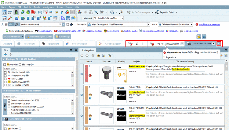 The labeling of a tab is according to the search term of a full-text search or variables search. At the other search methods the method's name is displayed.