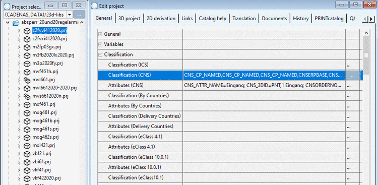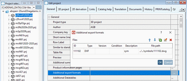 1. Select the project to which you want to assign a certain symbol as additional export format. (In this example "c2fvvi412020.prj".)