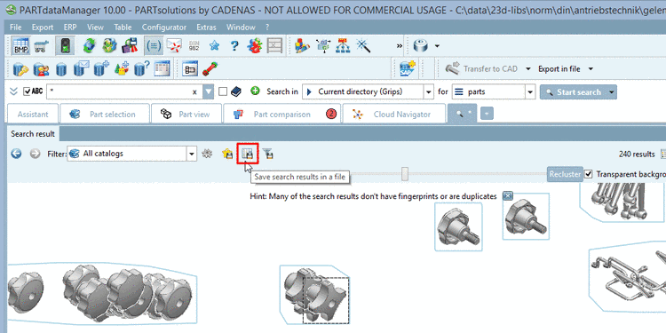 [51] The tolerance is set via configuration file and normally has not to be changed. See $CADENAS_SETUP/partsol.cfg -> block [FULLTEXTSEARCH] -> key TopologyTolerance.