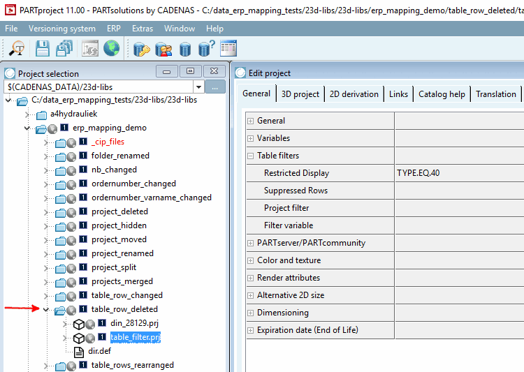 A table restriction [Restricted display] TYPE.EQ.40 was set for the table_filter.prj project.