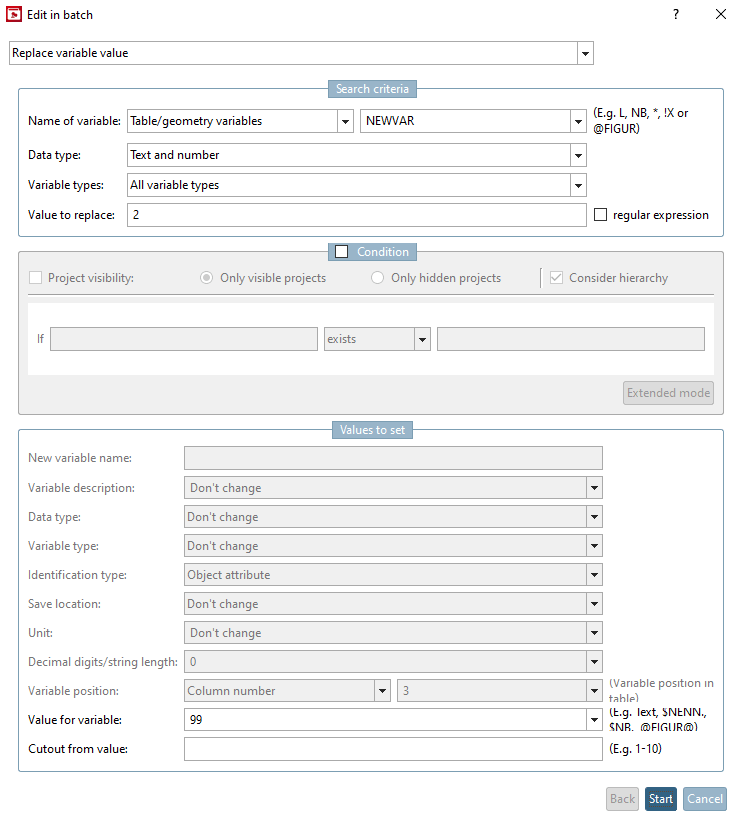 Under Value to replace, enter the current variable value (here "2"). (Regular expressions can also be used if the Regular expression checkbox is activated)