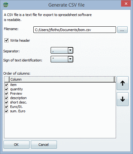 It can be imported by a CAD system at a later point. Table display criteria which are then allowed for in the CAD system, can already be defined in PARTbom using various input fields.