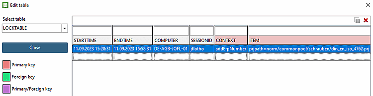 After calling PARTlinkManager and opening the Extras menu -> Database -> Edit additional tables and selecting LOCKTABLE, locked project rows are displayed.