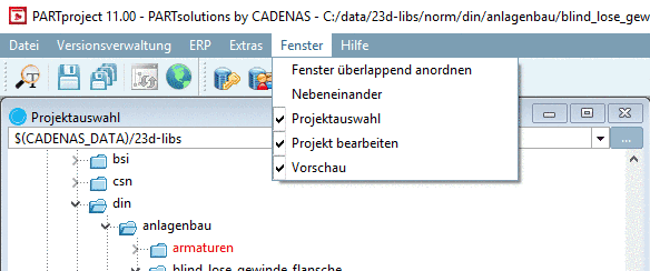 Individual adjustments happen in the configuration file menuvisibility_PARTProject.cfg.