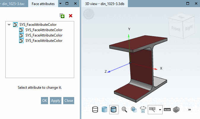 Selection of a single area: If a selected area already contains attributes, these are displayed directly in the area attributes [Face attributes] docking window.