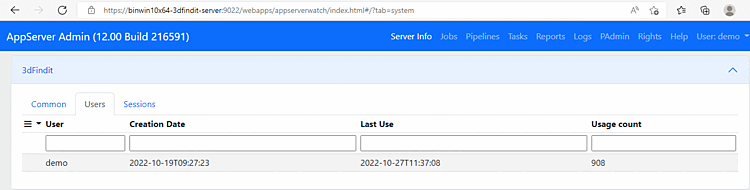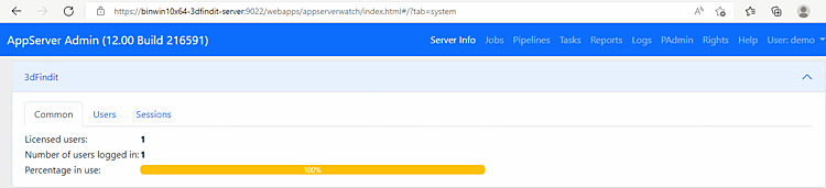 To check users, sessions and licenses, open AppServer Admin