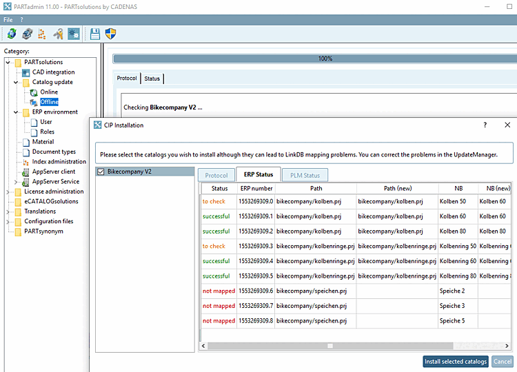 For a catalog update [Catalog update] with ERP integration, the CIP Installation dialog box appears by default.