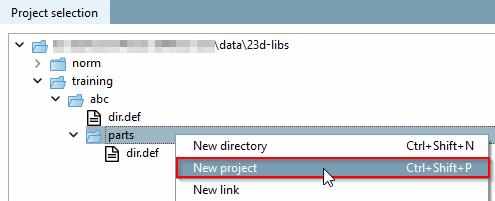 -> In the index tree, the new project „part_xy.prj“ ("single-part-xy") is displayed inclusively the template files (3db, def, tab).