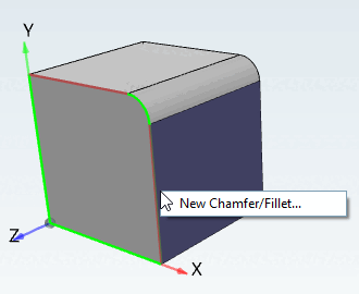 Select further edges to be rounded on the 3D model (red marking) and call up the Create new chamfer/rounding [New Chamfer/Fillet...]... command in the context menu. in the context menu.