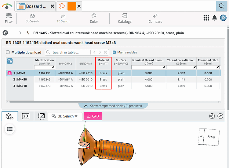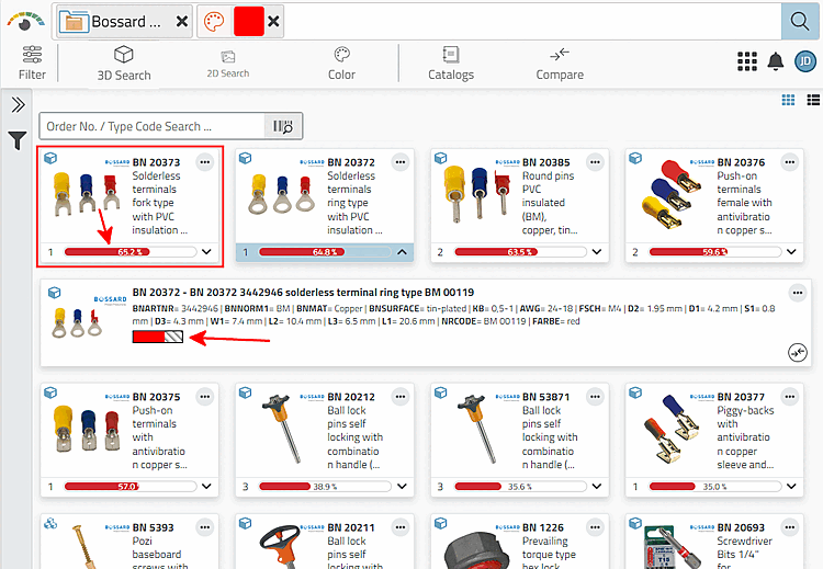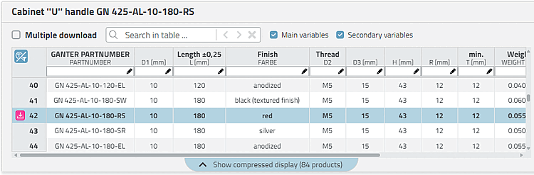 .In the opened table you will see other lines, where the part is offered in different colors.