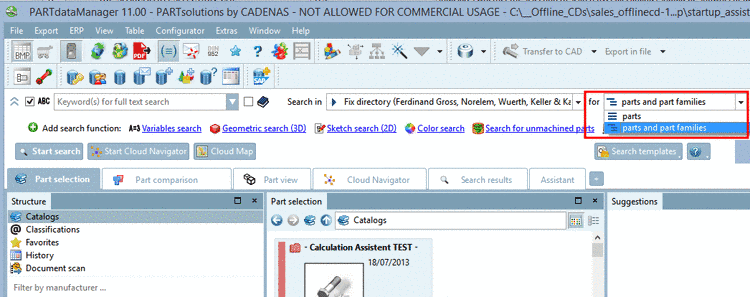 Indicates whether the view mode selection shall be shown (options parts | parts and part families).