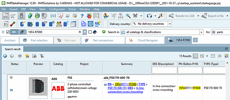A wildcard search is always associated with a certain loss of performance, but it depends on how many hits there are. For example, a search for s* is significantly slower than a search for *screw. If a search for s* is carried out across a large number of catalogs, it can happen that the PARTapplicationServer aborts the search because it would cost too much performance. In this case, an error message such as: Placeholder search too general. [Wildcard search too general. Narrow down the search by specifying additional letters or numbers.] Restrict the search further by entering additional letters or numbers. [Wildcard search too general. Narrow down the search by specifying additional letters or numbers.]