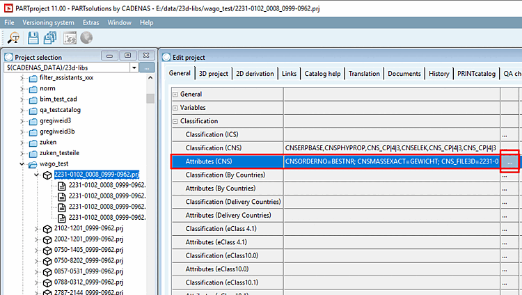 Select the project file and open by clicking on to open the characteristics of the CNS classification.