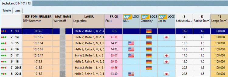 For the demo users different filters have been defined, so the view in PARTdataManager differs.