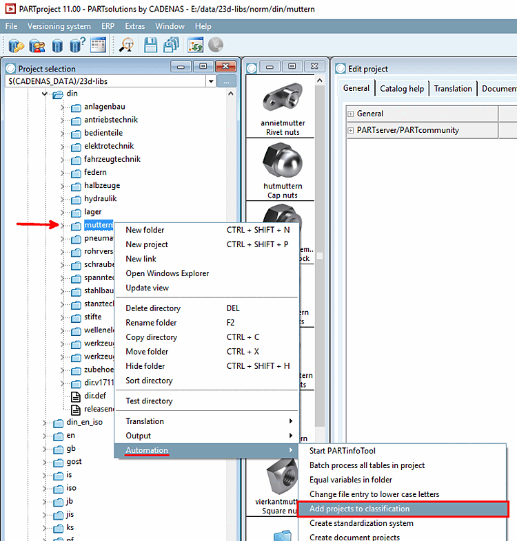 Start PARTdataManager, select the Classes tab and select your classification. The automatically assigned components are displayed.