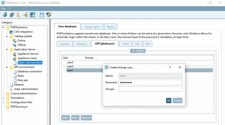 PARTsolutions supports several user databases. One or more of them can be active at a given time. However, only Windows allows for automatic login within the clients. In all other cases, the manual input of the password is mandatory at login time.