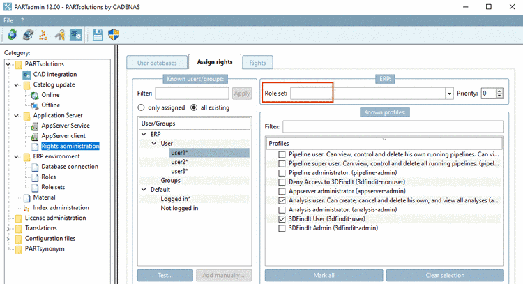 Open PARTadmin -> category Rights administration -> tabbed page Assign rights.