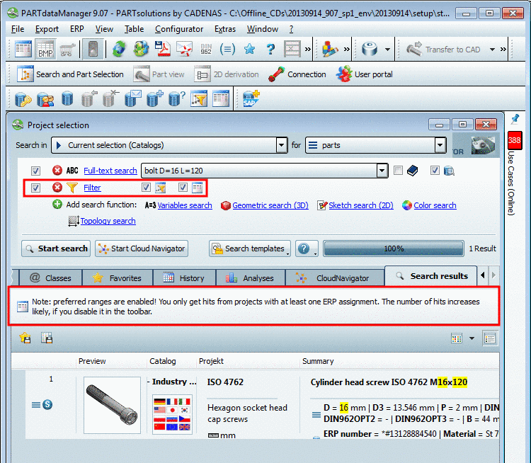 "Note: preferred rows are enabled! You only get hits from projects with at least one ERP assignment. The number of hits increases likely, if you disable it in the toolbar."