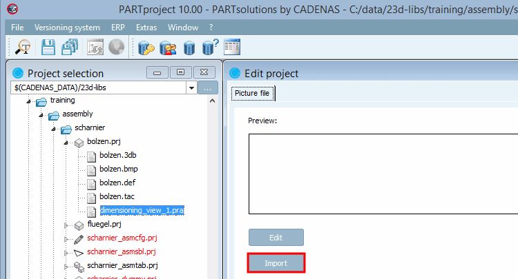 The dimension views displayed in PARTdataManager in the Technical specifications [Technical details] dialog area (e.g. side view [Side view], front view [Front view], etc.) are available in PARTproject as separate *.pra files. Dimensioning views are usually provided by the customer as DWG or DXF files.