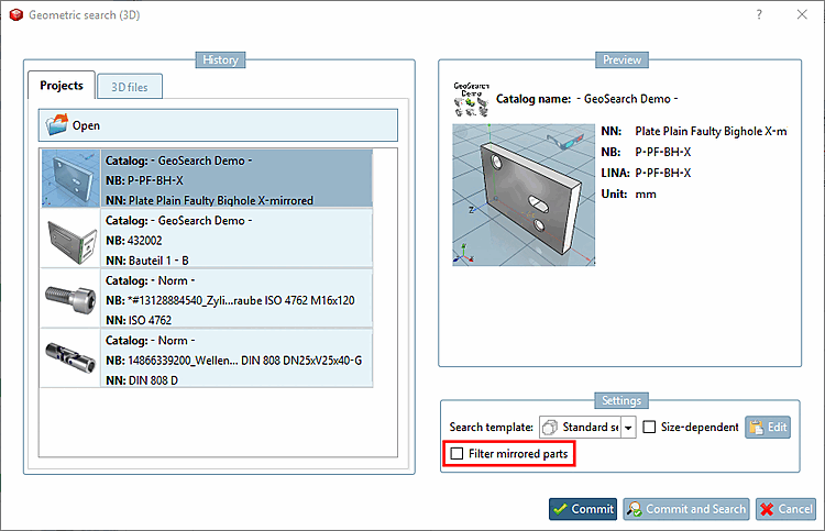 icon. If the option is activated, mirrored parts do not appear in the search results.