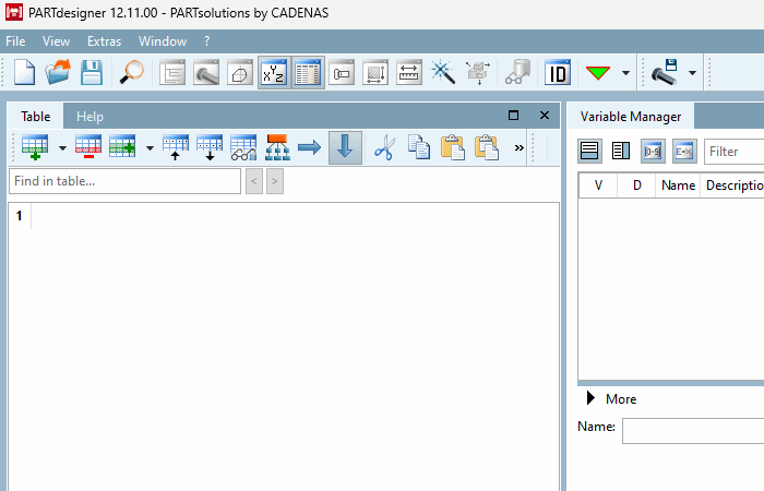 Click on New table to open PARTdesigner opens in table mode [Table mode].