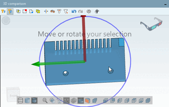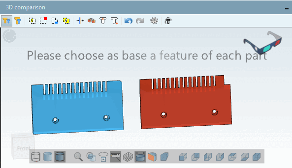 Align rotation and position manually [Align parts position and rotation manually]: As soon as you have clicked on the button, the corresponding information text appears: Please select a feature as the basis. [Please choose as base a feature of each part]
