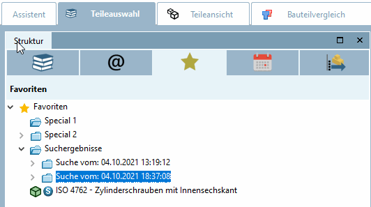 You will now find the entry on the Parts selection [Part selection] -> Favorites tab page.