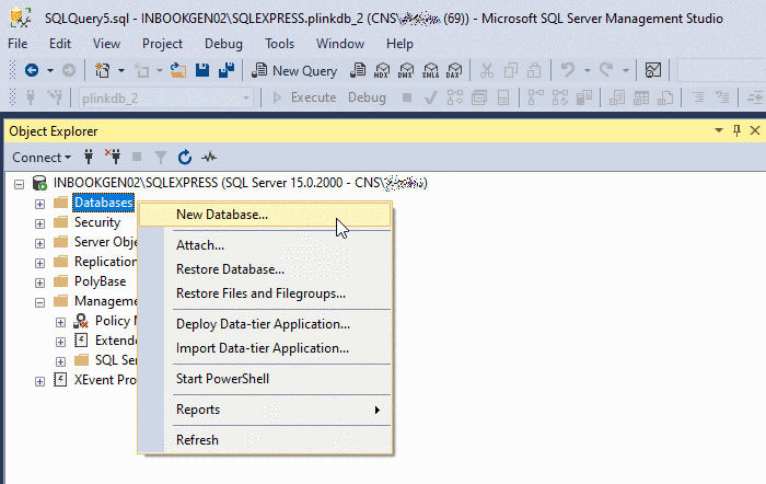 Create the Database: Right-click ‘Databases’ -> ‘New Database’