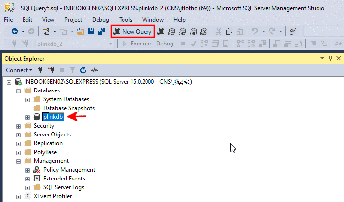 Select the created database and click on New Query.