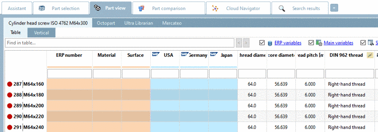 table of PARTdataManager they can be