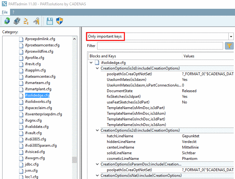 If no values are specified, under PARTadmin -> category Configuration files, free input is possible.