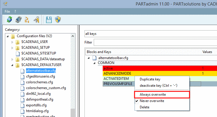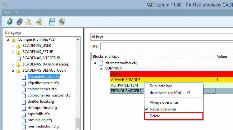 If a key is tagged in this way, then it is displayed in PARTadmin -> category Configuration files as "inactive"