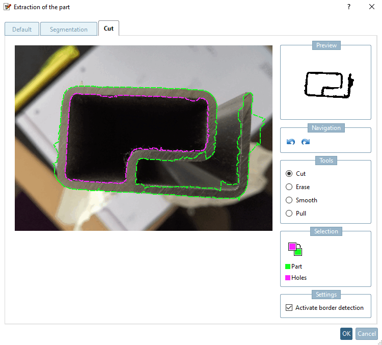 Activate edge detection [Activate border detection]: If the option is deactivated, please try to hit the contours as accurately as possible. The result will be adopted.