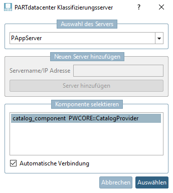 -> The PARTdatacenter Classification Server [PARTdatacenter Classify server] dialog box opens.