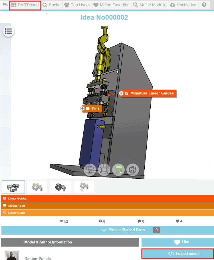 Projects uploaded in PARTcloud can be linked via project of the type Assistant and thus displayed in PARTdataManager / PARTcommunity can be displayed.