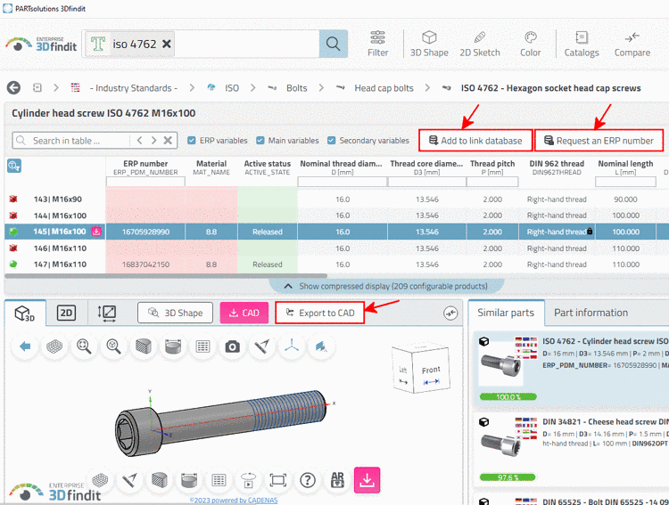 [WEB_ACTIONS], the LinkDB buttons for 3Dfindit are stated. The values