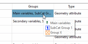 If you click on a cell within the Group column, you can call up the Variable groups window via the button.